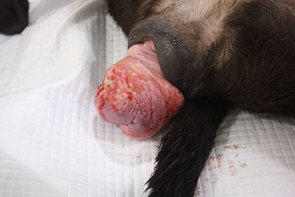 主人趕到醫院時才發現這個小朋友有嚴重的子宮脫垂