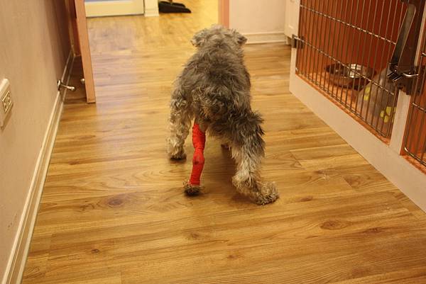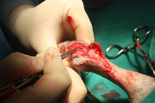 這個小朋友因為長期在後肢阿基里斯腱附近有個傷口沒有受到良好的控制