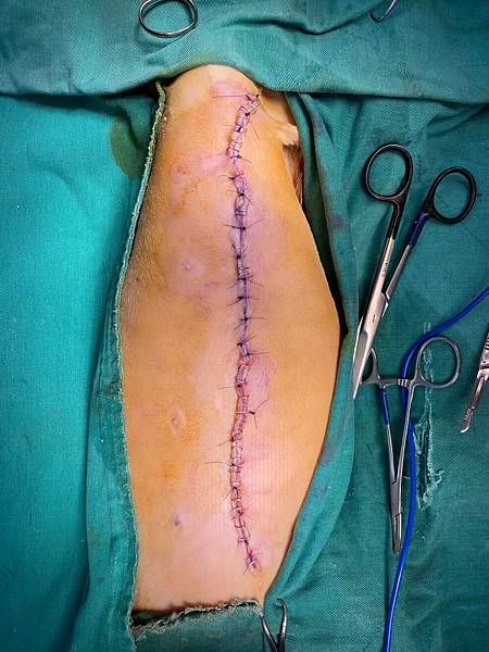 ►縫合皮膚,手術結束。辛苦了,小朋友。